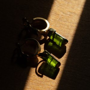 Celebrate the untouched beauty of nature with our Verdelia Raw Tourmaline Earrings – crafted in warm 18K matte-finished gold, each earring features a natural, uncut green tourmaline crystal that captures the wild elegance of the earth. The bold color, refined form, and subtle sparkle of raw gemstone meet timeless comfort with secure huggie-style closure.