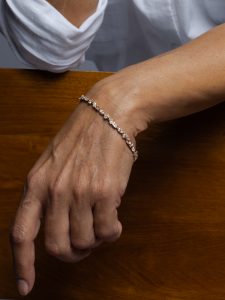 This bracelet is set with carefully selected lab-created diamonds, grown with minimal environmental impact and identical in beauty and structure to natural diamonds. Each pair is one of a kind — diamond shapes, size distribution, and color may vary slightly.