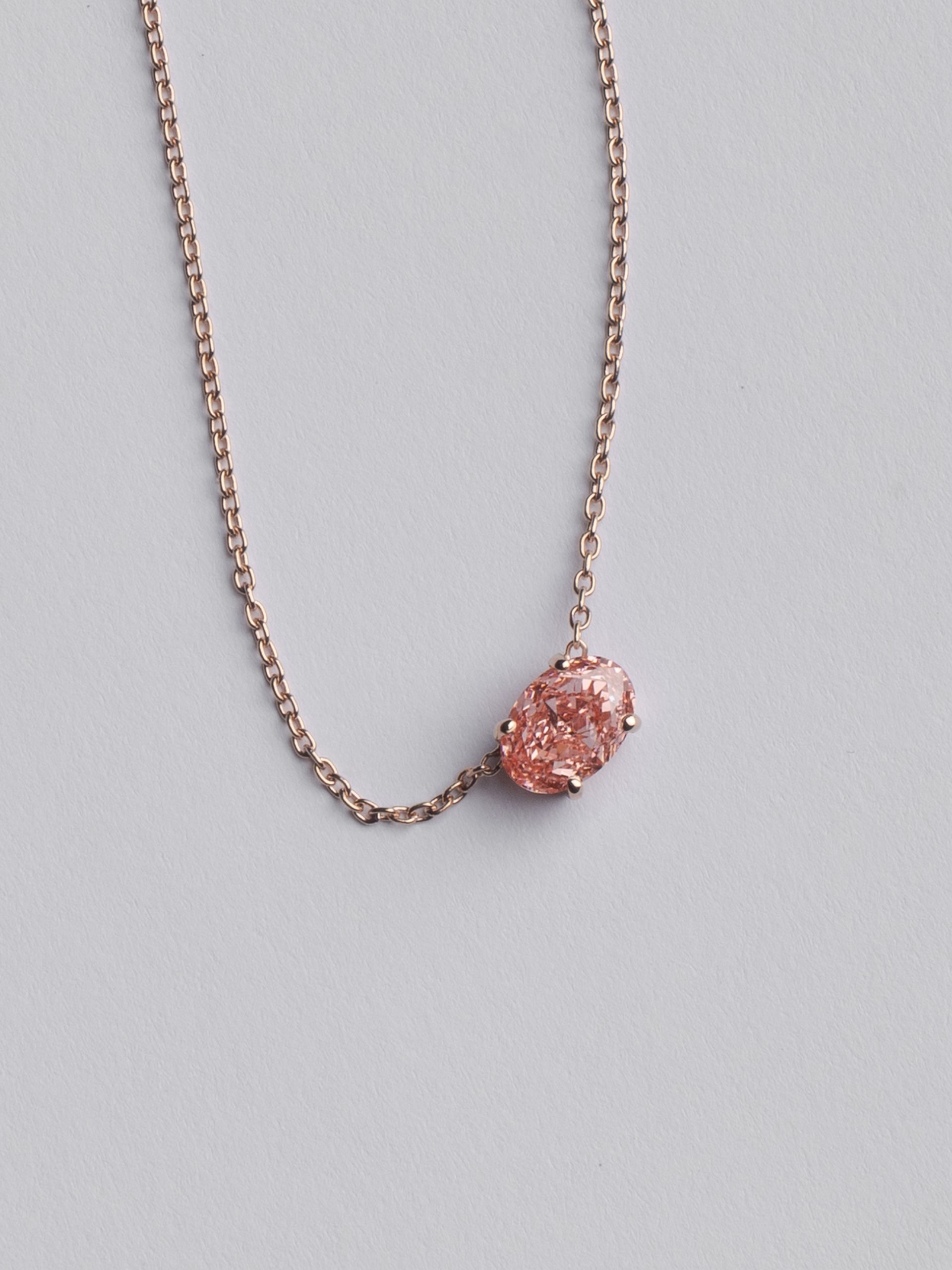 Embrace subtle romance with the Blush Glow Necklace – featuring a 1.3 carat oval rose-colored diamond set in warm 18K rose gold. Elegant and effortlessly feminine, this delicate piece radiates timeless charm with a soft pink glow. Whether layered or worn solo, it’s a captivating everyday luxury for the modern muse.