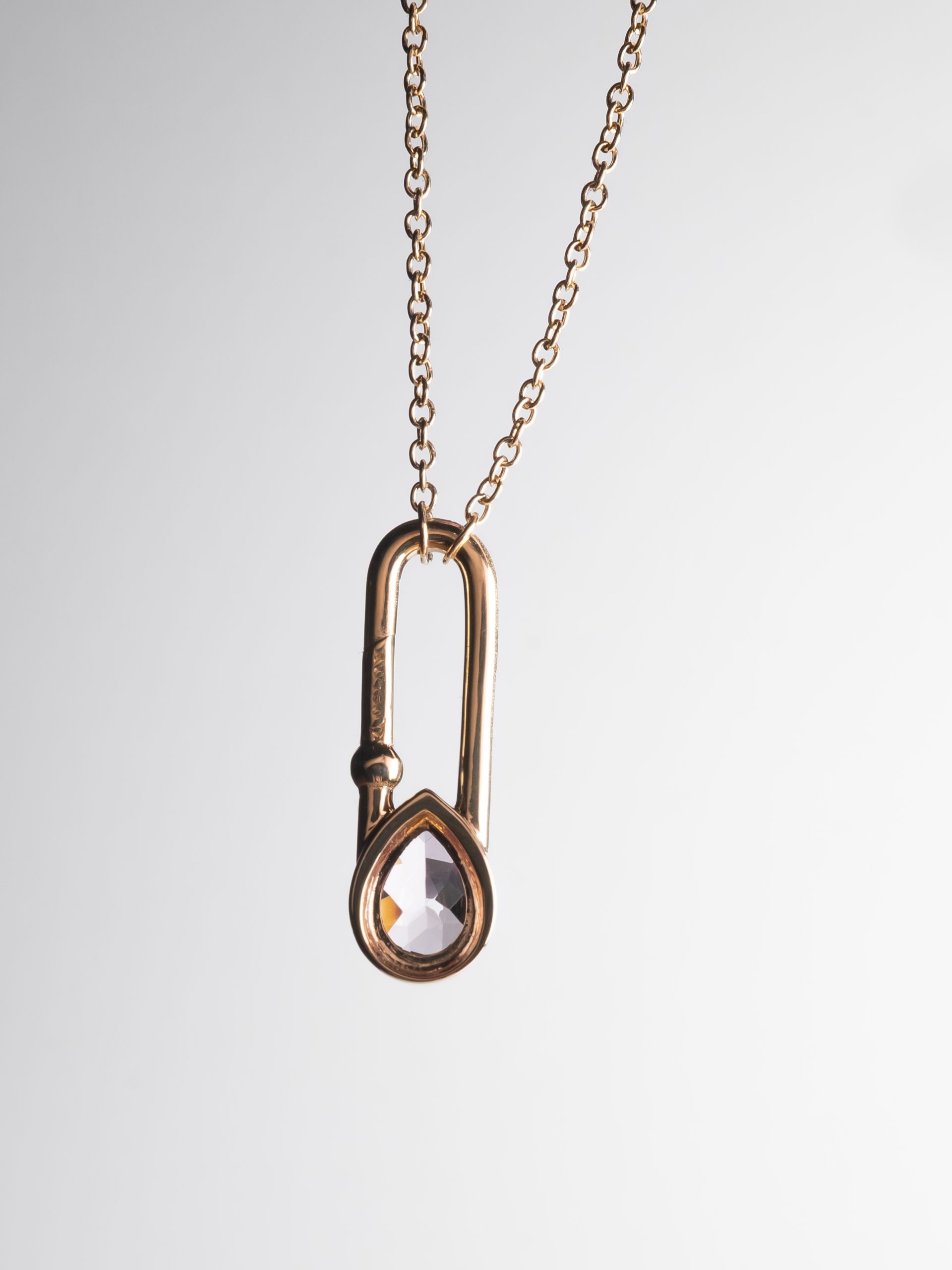 The Safety Glam Pendant transforms the iconic safety pin into a statement of modern luxury, featuring a 1-carat pear-cut diamond set in 18K Gold. Complete with a matching gold chain, it’s bold, elegant and effortlessly chic.